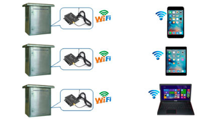 E5011具有多種通訊模式:遠距離通信時裝置可配置GPRS模塊連接網絡,用戶可在客戶端查看數據;近距離通信時裝置可配置WIFI無線通信,用戶可在具有WIFI功能的終端設備(如手機)查看數據。